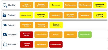 Red and orange zones highlight critical deficiencies – the fact you haven’t been breached can to a large extent be attributed to luck. I suggest presenting the report to the executive leadership team: the case for urgent action becomes clear and maintaining the status quo is no longer a viable option. If applicable, reiterate your company’s role in the in the wider ecosystem as part of critical national infrastructure and the fact that attackers increased the level of capability and broadened their targeting (Forbes 2023). Leverage the external party report for added objectivity which helps avoid the ‘shooting the messenger’ fallacy, as these findings are coming from an independent credible source.