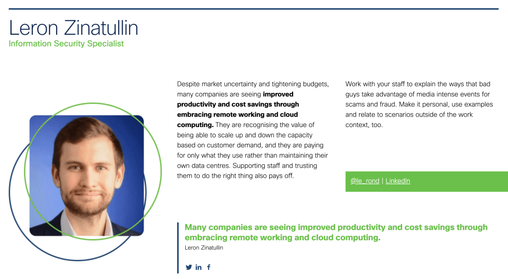 I had a chance to contribute to a free eBook by Cisco on adapting to the challenges presented by the Covid-19 pandemic. Check it out for advice on securing your remote workforce, improving security culture, adjusting your processes and more.