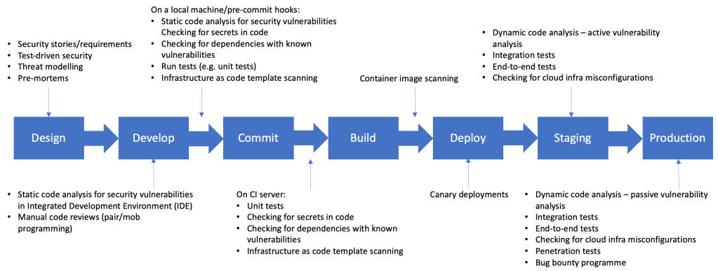 I deliberately kept this representation tool and vendor agnostic. For some example tools and techniques at every stage, feel free to check out the DevSecOps tag on this site.