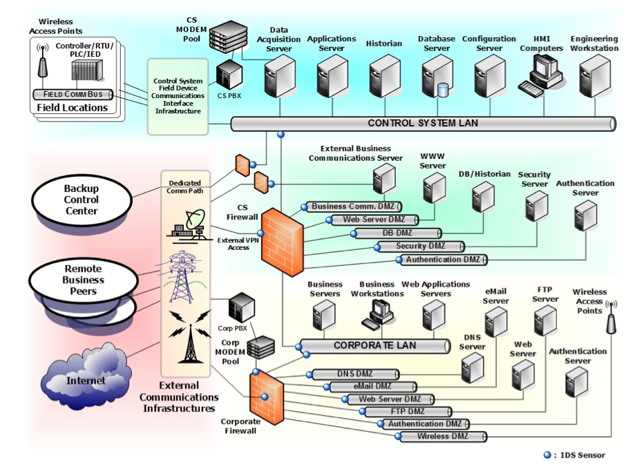 Control networks have merged with corporate networks in order to facilitate monitoring and controlling systems from the outside, which allows decision-makers at an enterprise level have access to process data. Network topologies can vary greatly from ICS to another, with different characteristics for each layer within a control system hierarchy, but the most important components they must include are: a fieldbus network, a control network, communications routers, a firewall, modems, and remote access points.